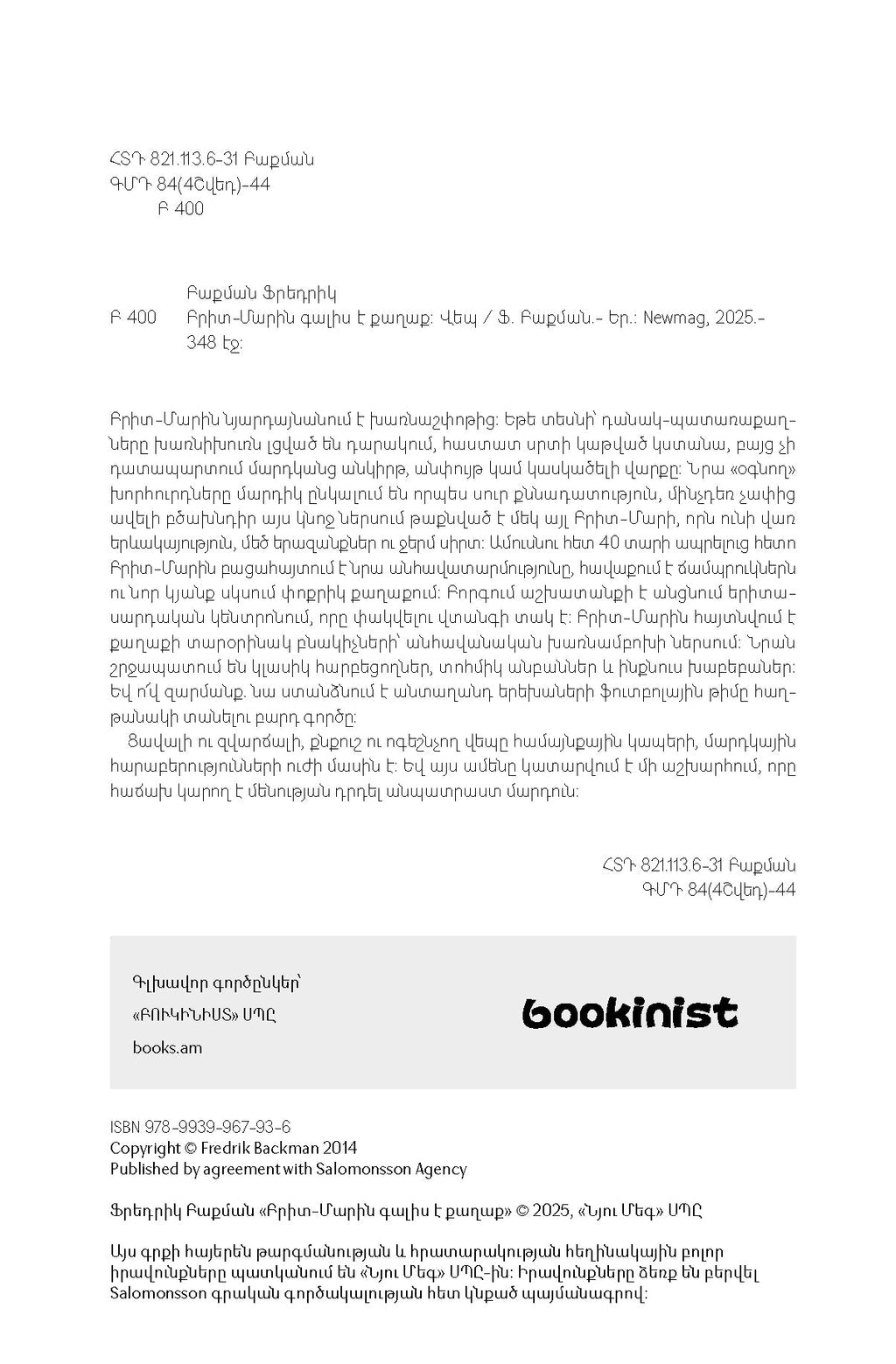 | Title in Armenian | Ֆրեդրիկ Բաքման - Բրիտ-Մարին գալիս է քաղաք |