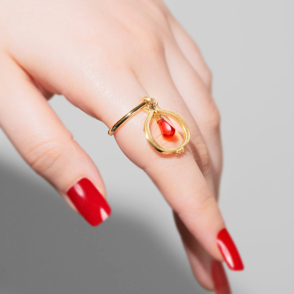 Introducing the perfect blend of nature and style, the "Seed-Inspired Elegance" Pomegranate Ring with Tiny Seed Design. Crafted with exquisite attention to detail, this adjustable ring boasts a unique pomegranate design that is inspired by the tiny seeds found within the fruit.