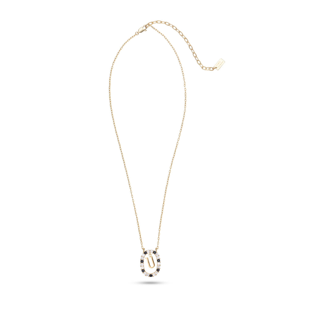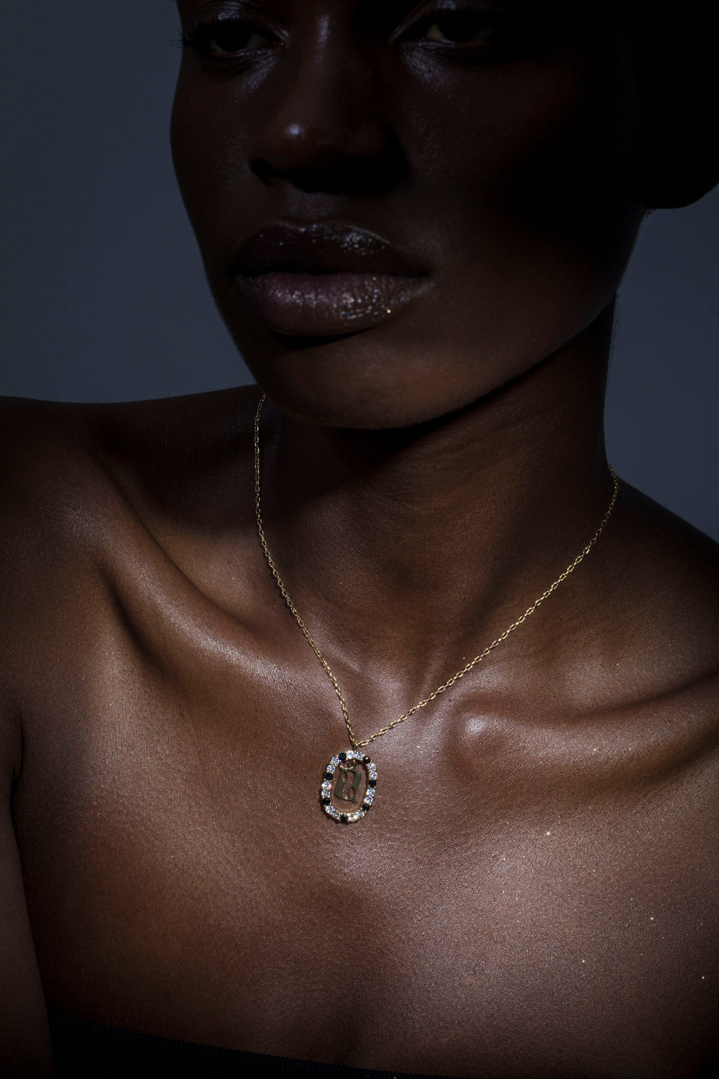 Zircon Gemstone Array: The pendant is adorned with a row of clear and black zircon gemstones, meticulously set in an oval formation. These sparkling stones add a touch of glamour and sophistication to your everyday or special occasion outfits.