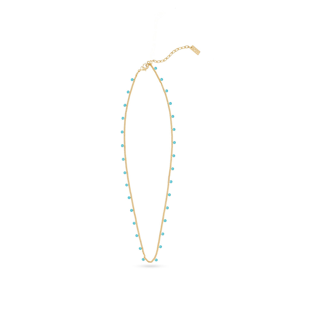 The necklace is designed to be delicate and dainty, with an adjustable chain that allows you to wear it at the perfect length for you. The chain features small round dots that give it a unique and eye-catching look, making it the perfect accessory to complete any outfit.