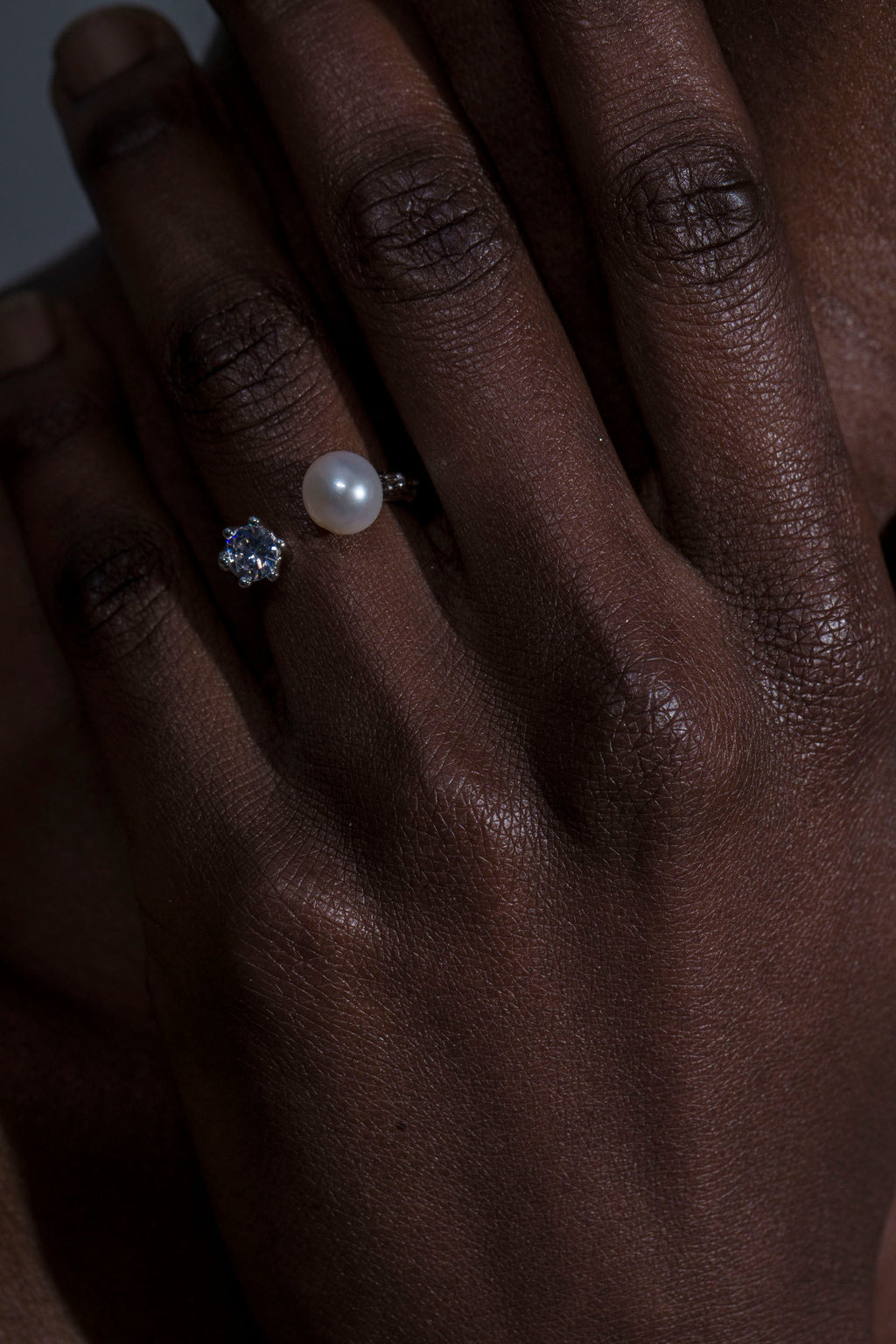 Crafted from high-quality materials, this ring is plated with gold or silver for a luxurious and elegant finish. The ring features a small round zircon gemstone on one side opening, adding a touch of sparkle and glamour to your look. On the other side, an irregular shape natural sea pearl enhances the bracelet's natural beauty and charm.