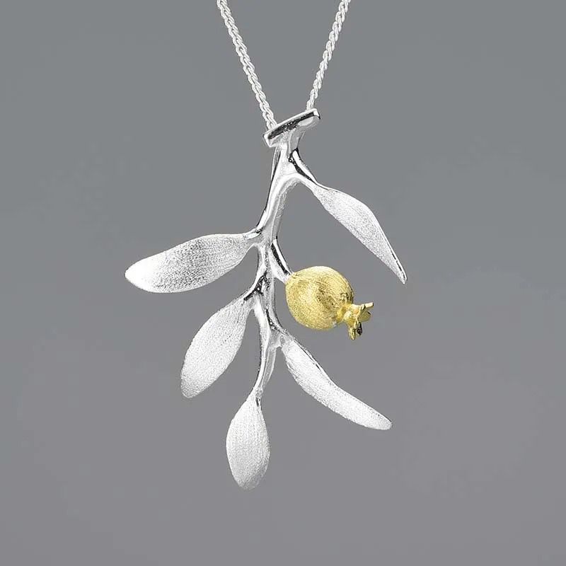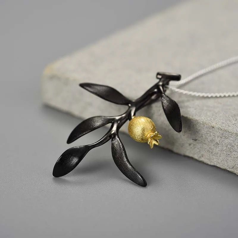 Enjoy the captivating fusion of nature-inspired elegance and artisanal craftsmanship of the Pomegranate Branch Necklace. Crafted from high-quality 925 sterling silver, the necklace ensures durability and a radiant shine. The design features delicate branch adorned with intricately detailed 18K gold-plated pomegranate, symbolizing abundance and prosperity.