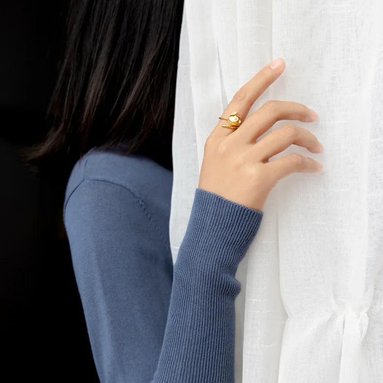 This 925 sterling silver Tulip ring with 18K gold-plating is a delicate and charming piece suitable for all ages. Expertly crafted, it adds a touch of elegance and femininity to any look. Made of high-quality materials, its timeless design will elevate any outfit.