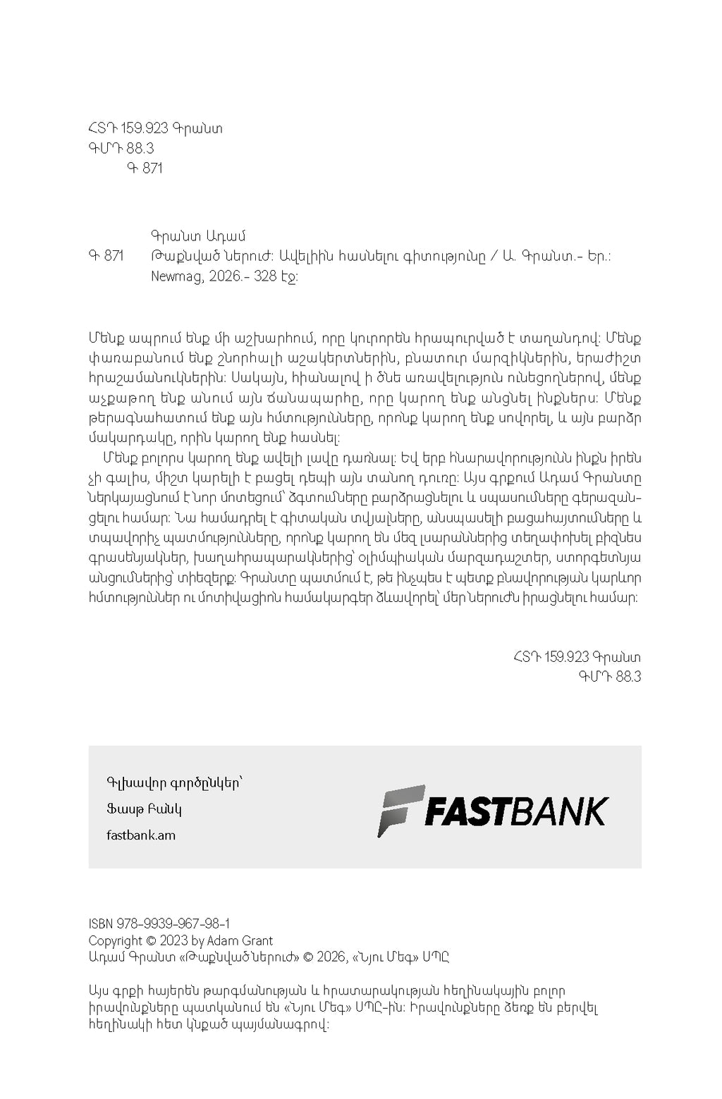 | Title in Armenian | Ադամ Գրանտ – Թաքնված ներուժ |