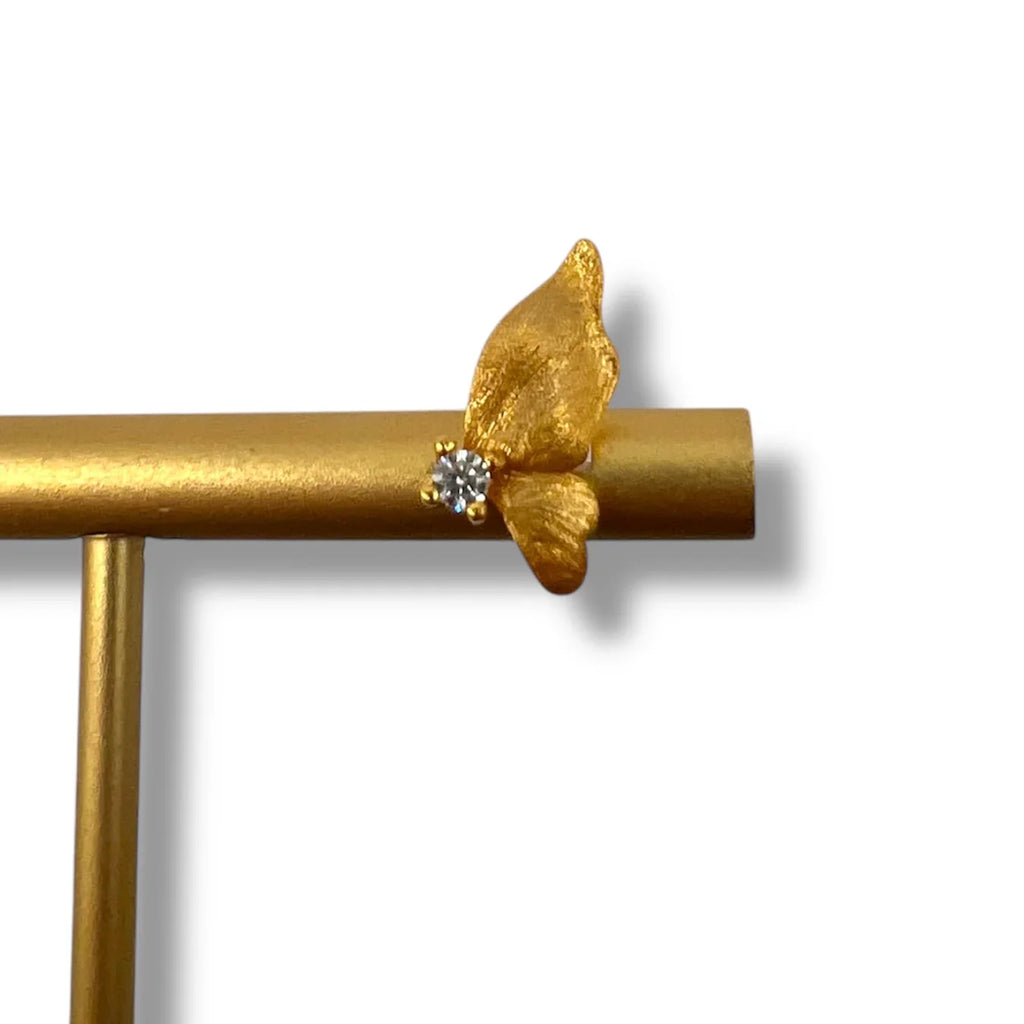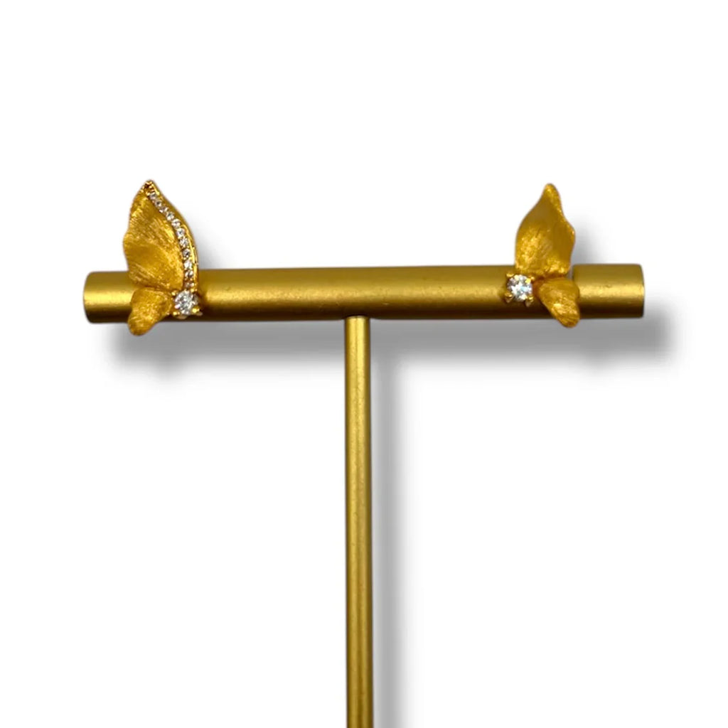 Elevate your elegance with these stunning butterfly stud earrings, crafted from sterling silver with a luxurious 22k gold plating. Adorned with sparkling zircon gemstone accents, these earrings capture the essence of grace and sophistication. Perfect for adding a touch of refined glamour to any outfit, they are a timeless addition to your jewelry collection.