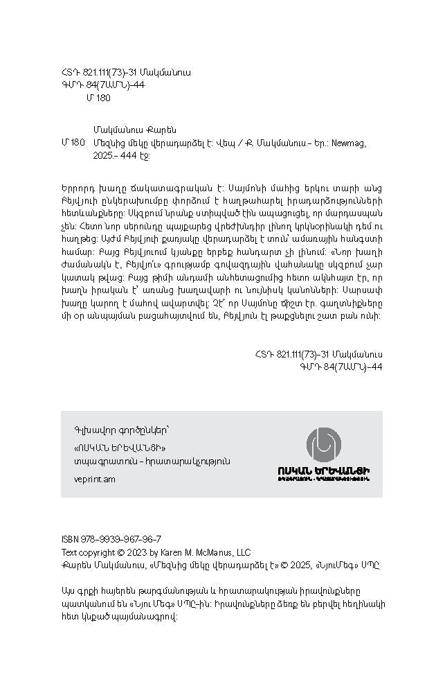 | Title in Armenian | Քարեն Մակմանուս - Մեզնից մեկը վերադարձել է |